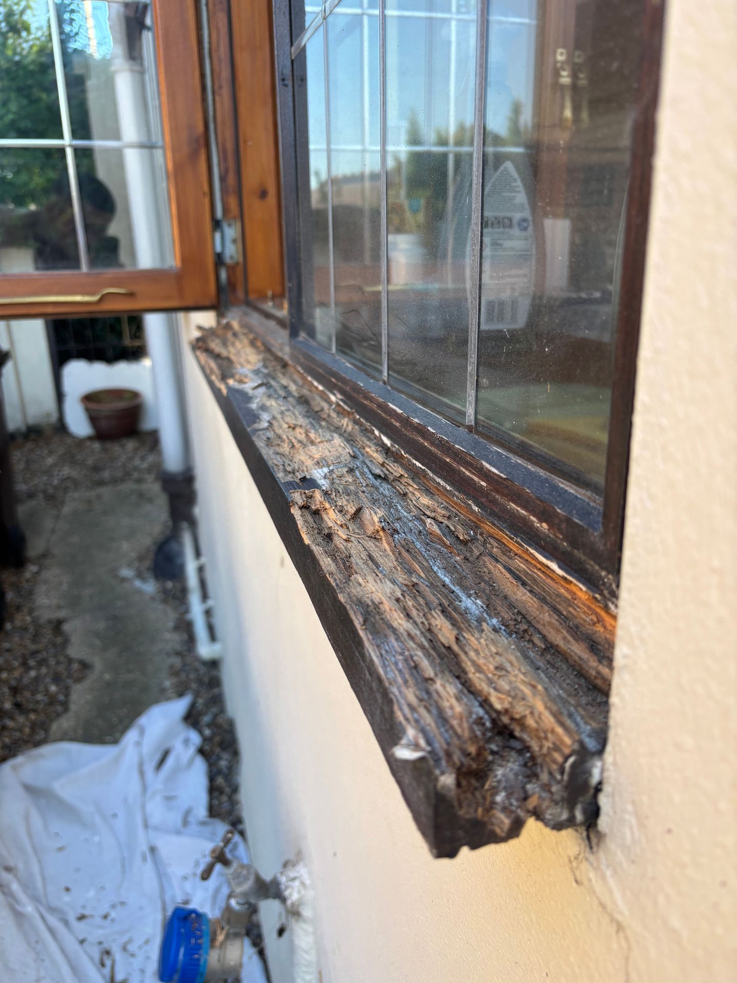 This can be treated and repaired using a 3 step epoxy resin process which is guaranteed to last throughout the seasons, and is far superior to conventional fillers which can fail on these rotten areas over time, and don’t kill the issue at the source.